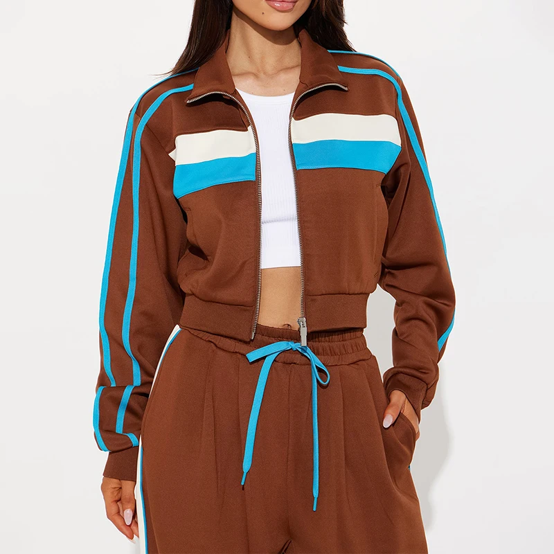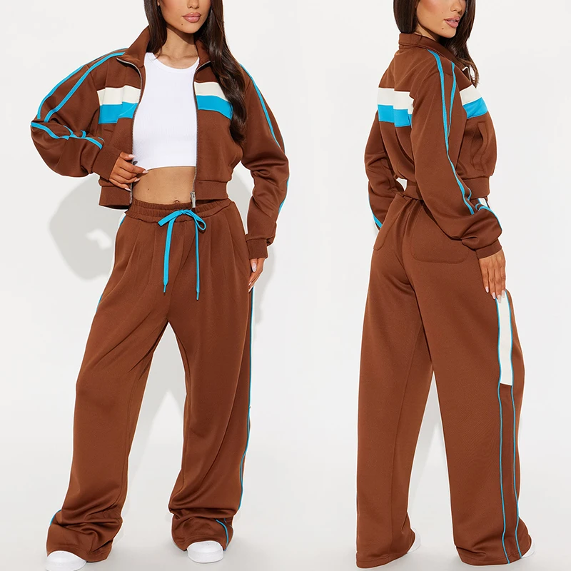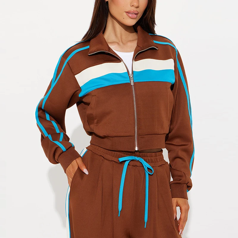 Huilil Custom Premium Patchwork Zip-Up Jacket Loose Fit Pants 2 Piece Fashion Streetwear Outfits for Women Short Tracksuit